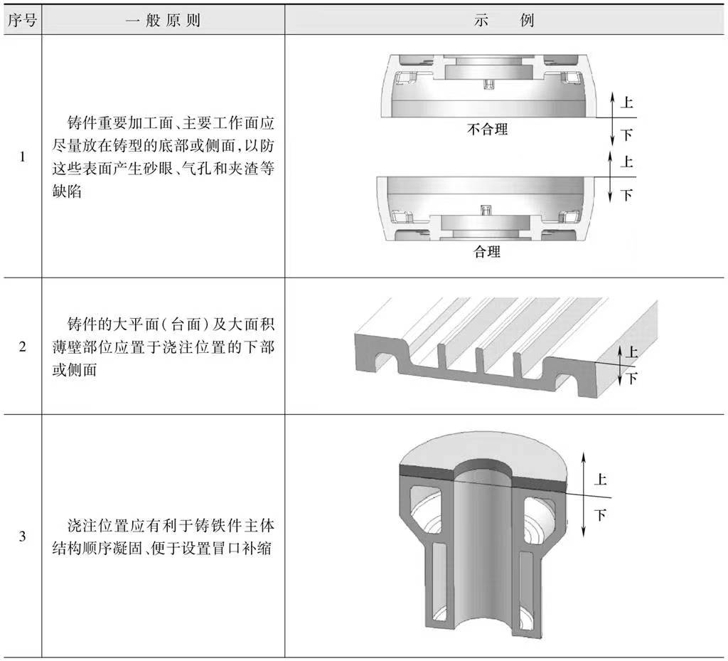 表-1 澆注位置和分型面設(shè)定原則