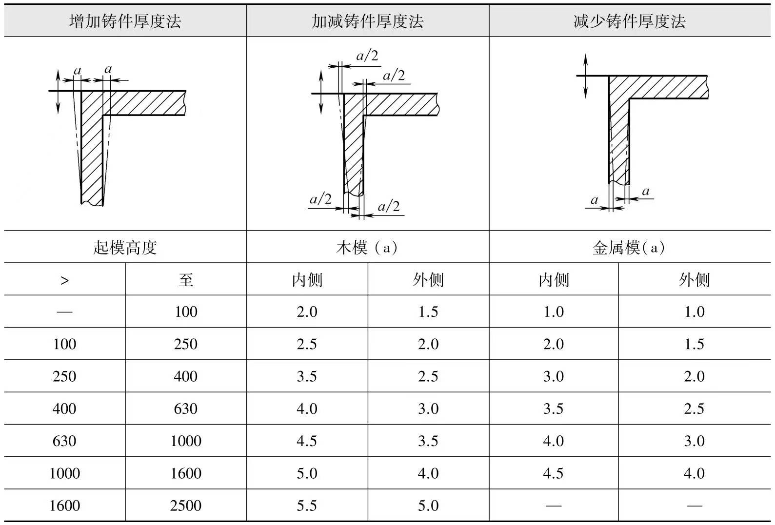表-7砂型鑄件起模斜度 (單位:mm)