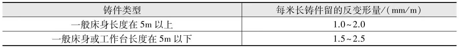 由于鑄件的壁厚不均勻或結(jié)構(gòu)上的原因,造成鑄件各部分凝固、冷卻速度不同,收縮不一致,使得鑄件產(chǎn)生撓曲變形。制造模具時按鑄件可能產(chǎn)生的變形方向預(yù)先做出反變形量,以抵消鑄件的變形,反變形量一般可按表-8選取。表-8 鑄件的反變形量選擇