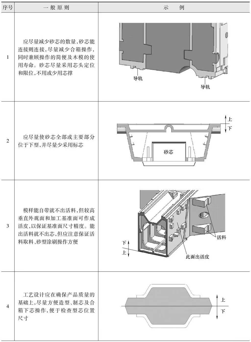 鑄造工藝設(shè)計相關(guān)原則(見表-2)